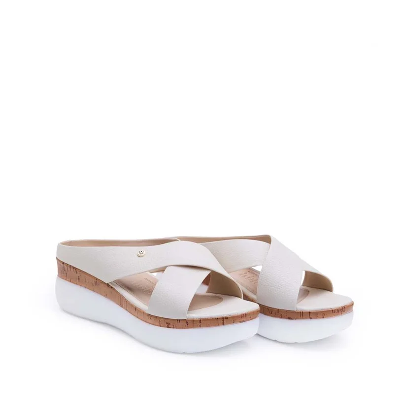 Sandalia Slide Casual ALE-2520 Hueso Viale Cuero